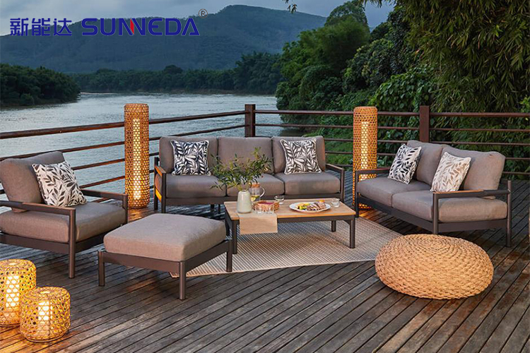 This fresh classic modern sofa set brings an high level of longevity, features and comfort to outdoor furnishings. Aligning cultivated design with top-brand materials, it promises a lasting impression. This set fuses design detail, great forms and impressive upholstery. The sofa set incorporates a laser-cut sofa structure to ensure water drainage on rainy days.
